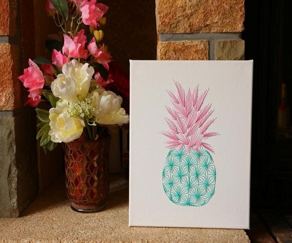 Vous prendrez plaisir à vitaminée votre intérieur. Et pourquoi pas réaliser cet ananas avec du fil doré pour un rendu plus kitch ou en blanc sur fond noir.