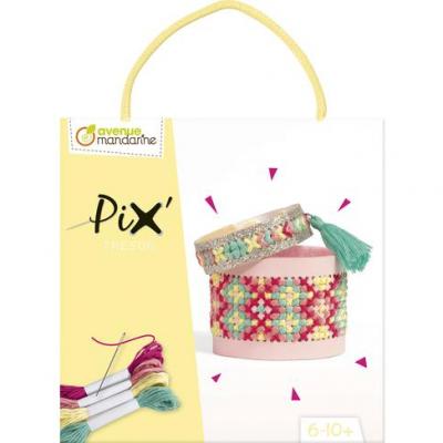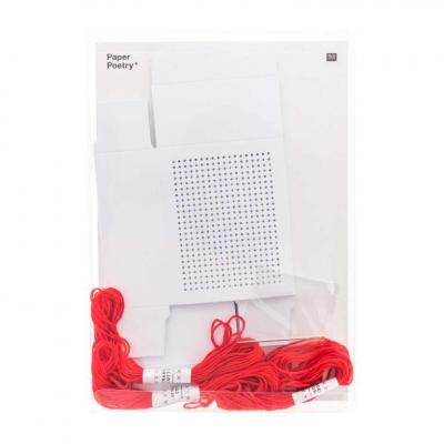 Boîte à broder, carton perforé, blanc lot de 3 avec fil rouge