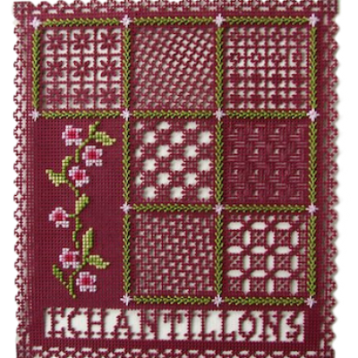 Feuille de papier perforée 270g - 7 points/cm - 23 x 24 cm - bordeaux broderie point de croix