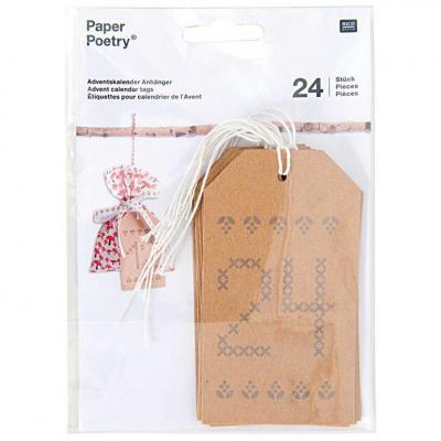 Broderie sur papier : 24 étiquettes calendrier de l'Avent kraft