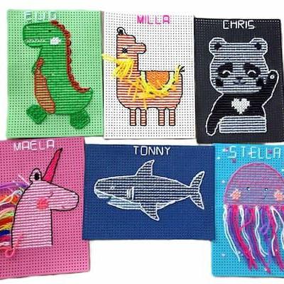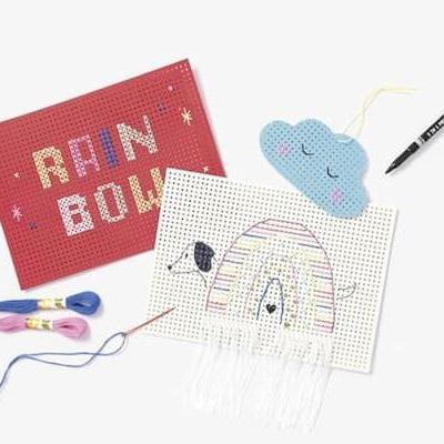 Carton à broder : fanion, lot de 10, broderie point de croix